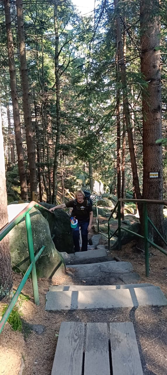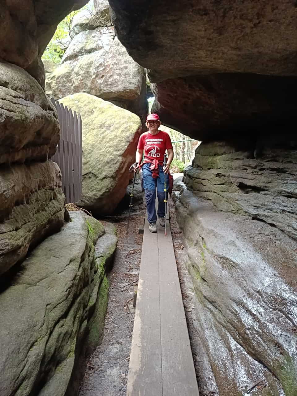 Zanim zaczęliśmy Główny Szlak Sudecki. Jeździliśmy wtedy w różne miejsca i robiliśmy z nich jednodniowe wycieczki. No i trafiliśmy właśnie na Błędne Skały. To była taka trasa, gdzie trzeba było wejść do góry, przechodzić między skalnymi formacjami, omijać je, wspinać się na kamienie, które były prawie na wysokości pasa. A do tego tłumy ludzi.