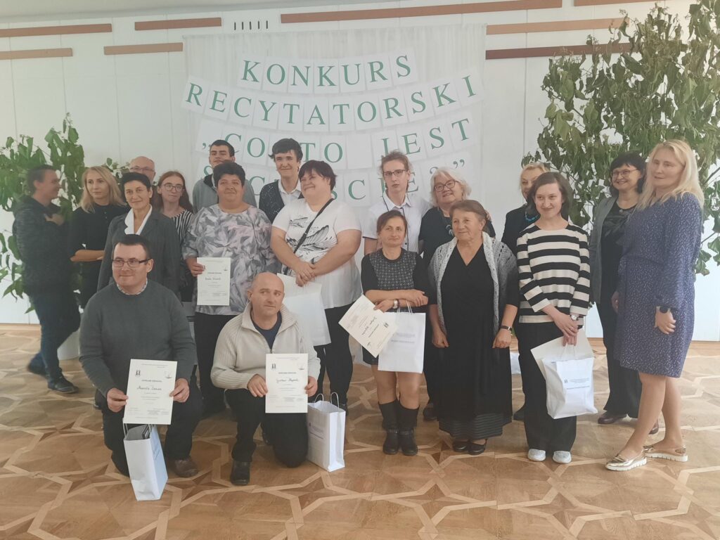 W kategorii „Dorosłych” triumfował Mateusz Kawarski z ŚDS w Hrubieszowie, który zachwycił jury brawurową interpretacją wybranego przez siebie utworu poetyckiego. Zaraz za nim uplasował się nasz uczestnik z pracowni stolarskiej – Marcin Czausz, a trzecie miejsce zajęła uczestniczka WTZ „Prometeusz” przy I.S.O.N. w Chełmie – Anna Karaś.