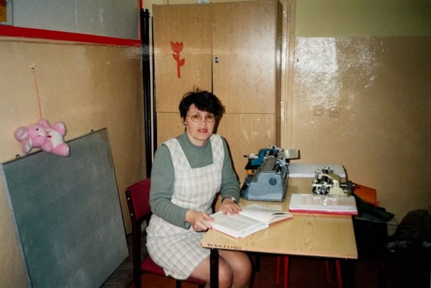 D.G. – Brakowało dosłownie wszystkiego. Mój warsztat pracy był początkowo wręcz ubogi. Posiadaliśmy tylko jedną maszynę brajlowską do pisania i kilka tabliczek. Prawda była jednak taka, że dzieci nie chciały pisać na tabliczkach, ponieważ to było zbyt męczące. Sprawa pozyskania pomocy do nauki brajla dla dzieci spędzała mi sen z powiek. Udałam się więc do prezesa Lubelskiego Okręgu PZN – pana Ryszarda Dziewy, któremu opowiedziałam o swoich szkolnych zmartwieniach. Pozyskanie funduszy na zakup nowych maszyn brajlowskich nie było proste, dlatego zaproponowałam, aby prezes ogłosił wśród członków okręgu, że potrzebne są maszyny do szkoły. Liczyliśmy na to, że komuś taka maszyna zalega w domu i mógłby ją przekazać dzieciom do nauki. W ten sposób po jakimś czasie zdobyliśmy pięć maszyn, które po naprawie i konserwacji, mogły jeszcze służyć do pisania. Wówczas na ulicy Kowalskiej w Lublinie był taki pan, który naprawiał maszyny do pisania, ale także maszyny brajlowskie. Za przegląd i drobną naprawę wziął jedynie symboliczną kwotę za części. To był dla nas i dla naszych szkolnych dzieci niesamowity prezent. Dziecko pisało literkę „A” i od razu mogło sprawdzić paluszkiem efekt swojej pracy.