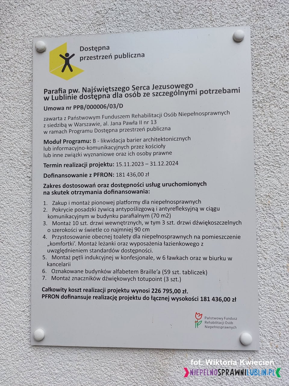 Dostępność Parafii Rzymskokatolickiej pw. Najświętszego Serca Jezusowego w Lublinie, 6.05.2025 r.