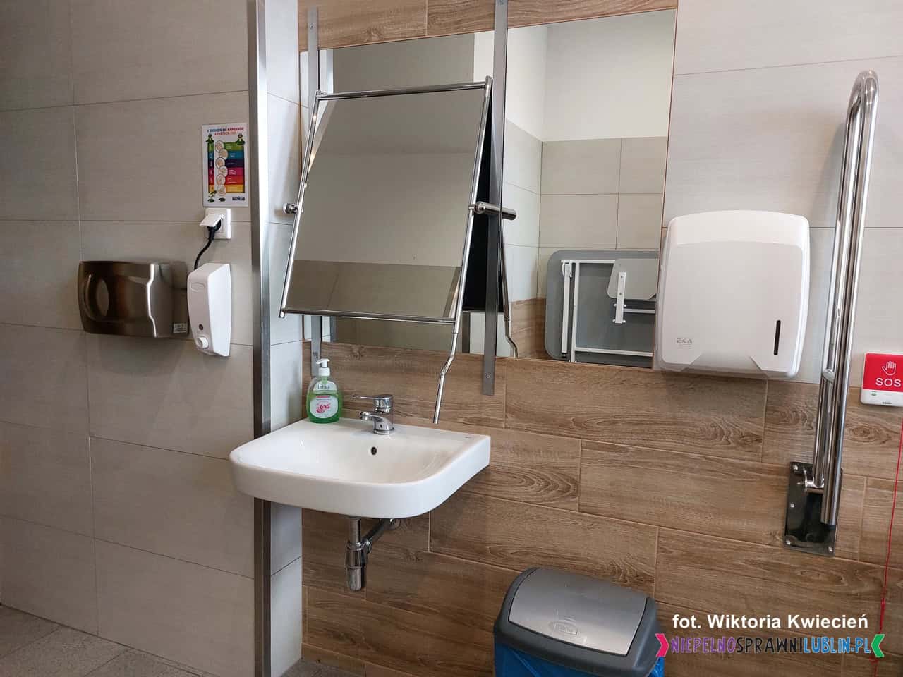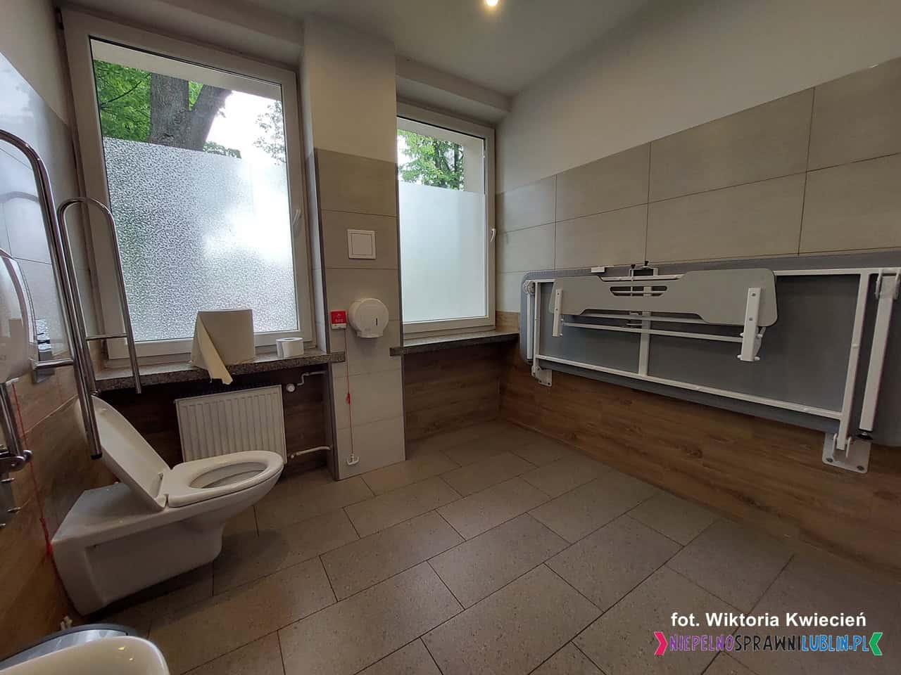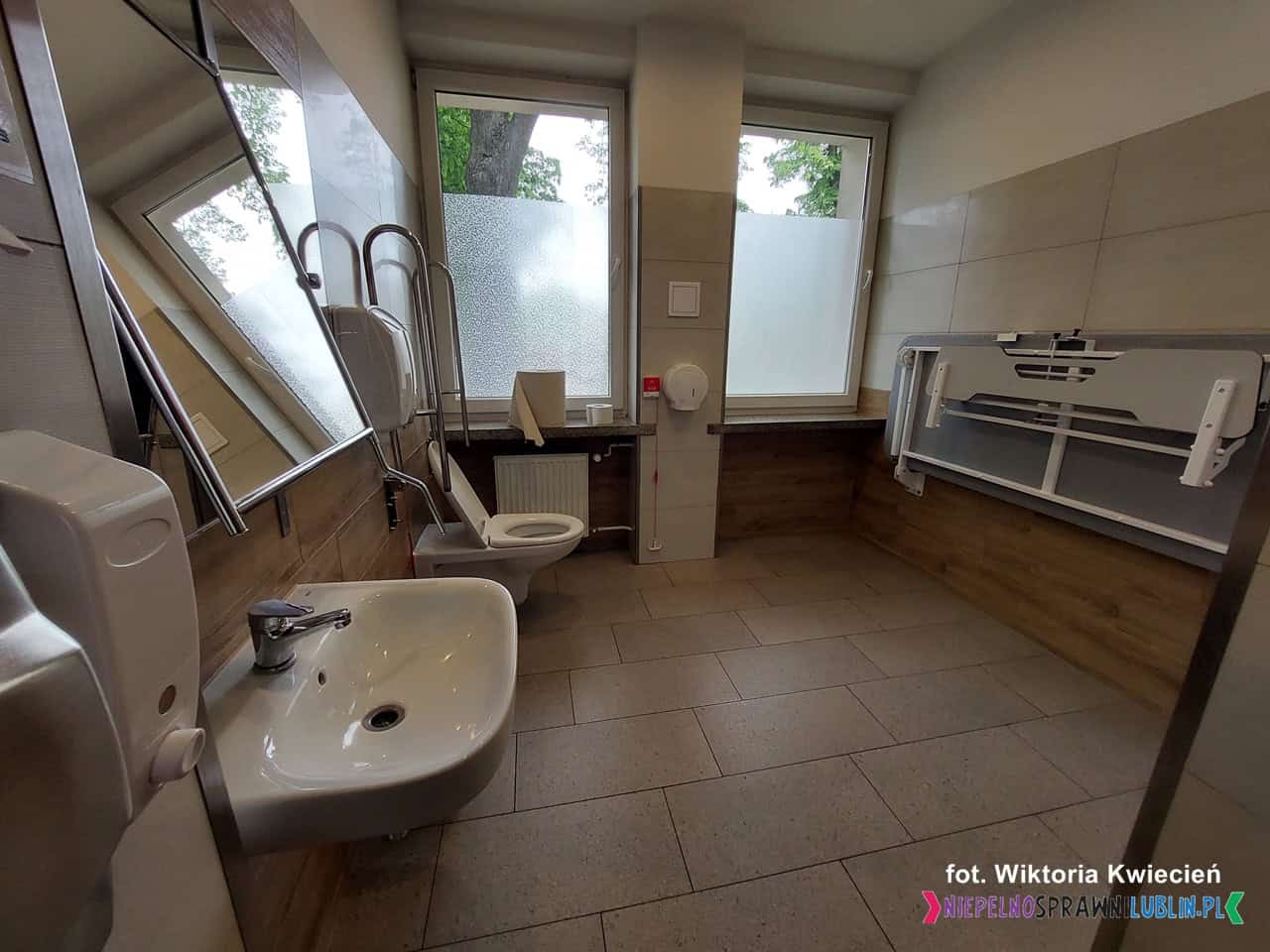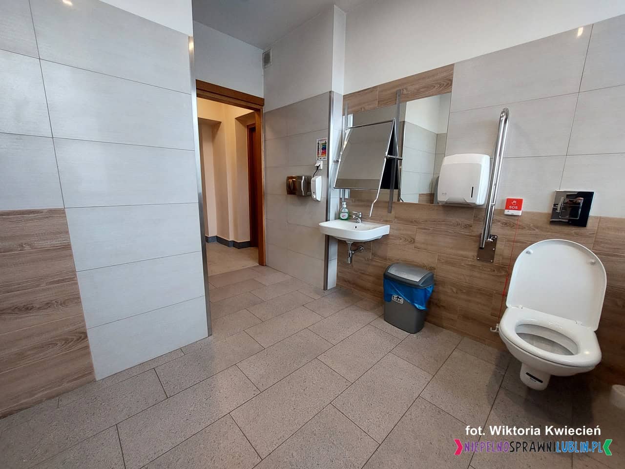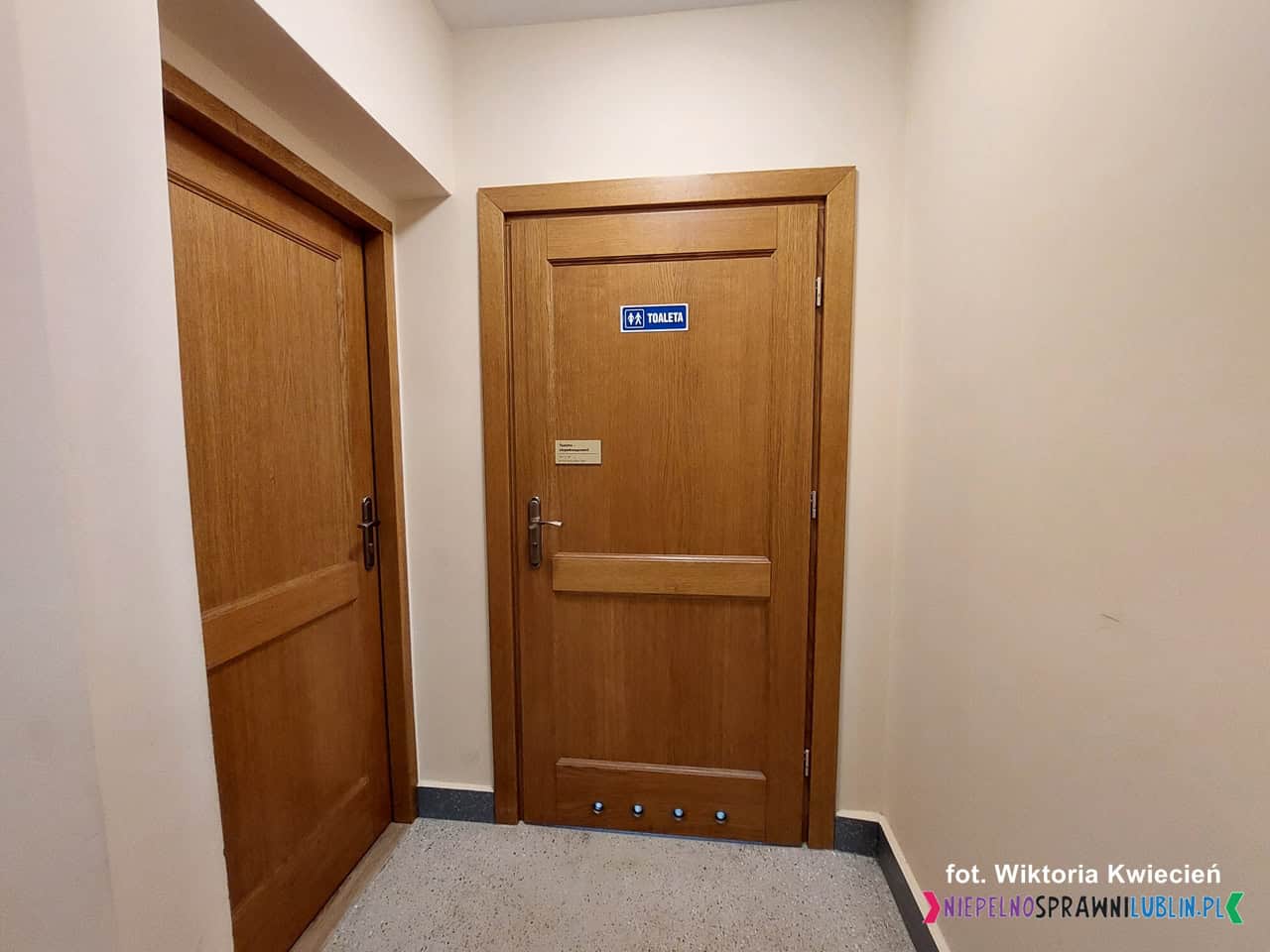 Podczas wizyty szczególną uwagę zwrócono na funkcjonalność i dostępność udogodnień a także ogólny komfort przestrzeni. Lubelski kościół jest prawdopodobnie pierwszym w Polsce, w którym znajduje się Komfortka. Przestrzeń toalety jest wyposażona w miskę ustępową z niezbędnymi pochwytami, umywalkę umożliwiającą podjazd wózkiem, lustro uchylne i stałe oraz składaną na ścianę leżankę dla dorosłych z rozkładaną poręczą zabezpieczającą przed upadkiem. W pomieszczeniu zamontowano system wzywania pomocy. Wyposażenie Komfortki dopełniają: dozownik na mydło, suszarka i pojemnik na ręczniki oraz kosz na śmieci. W toalecie nie zamontowano podnośnika ułatwiającego transfer pomiędzy wózkiem a leżanką.