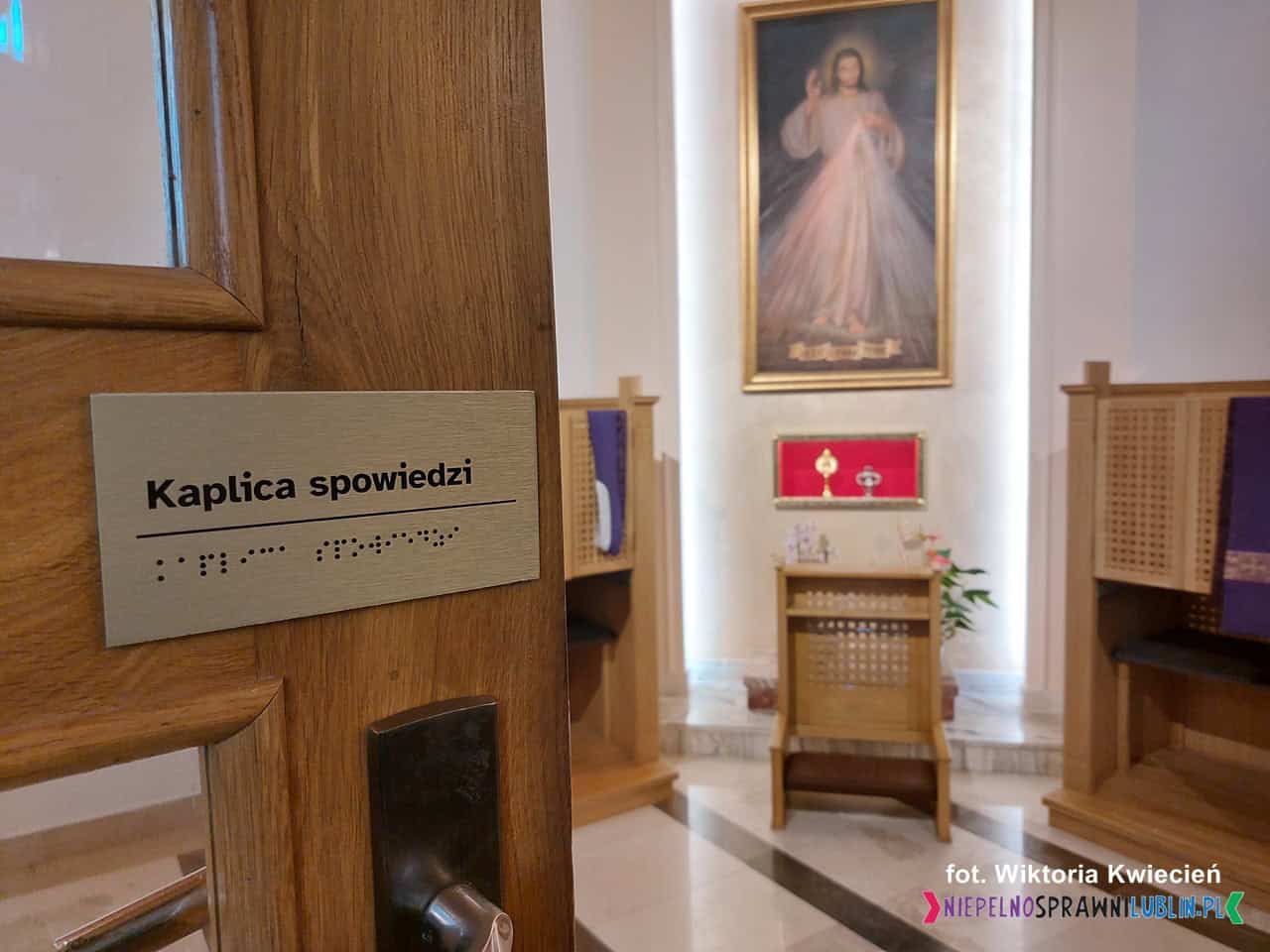 Ponadto, stworzono dyskretną przestrzeń umożliwiającą uczestnictwo w sakramencie pokuty osobom poruszającym się na wózkach. „Kaplica spowiedzi”, bo o niej mowa, jest pozbawiona barier i progów, co pozwala na swobodne manewrowanie urządzeniami mobilnymi.