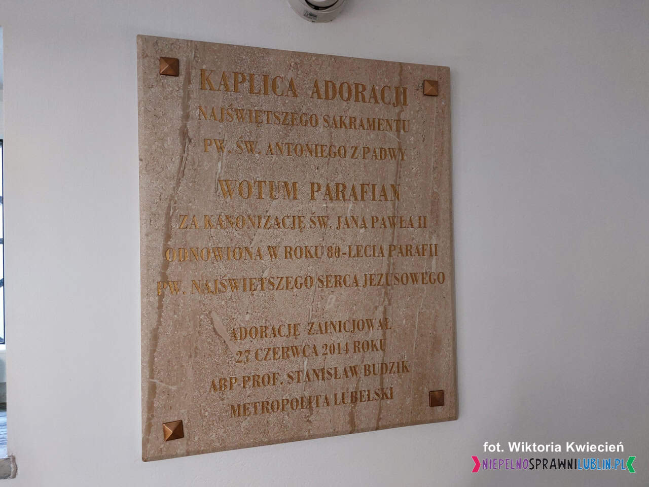 W podziemiu od 2014 r. funkcjonuje Kaplica Adoracji Najświętszego Sakramentu pod wezwaniem Św. Antoniego z Padwy. To miejsce przeznaczone modlitwie w ciszy i adoracji Jezusa obecnego w Najświętszym Sakramencie. Jest czynna codziennie w godzinach od 7:00 do 19:00. Istnieje również możliwość zapisania się na adorację w nocy, co może stanowić dogodną alternatywę dla tych, którzy w ciągu dnia mają inne obowiązki lub chcieliby modlić się późnym wieczorem. Pomimo, że miejsce znajduje się na kondygnacji niedostępnej architektonicznie dla osób z problemami narządu ruchu, pobyt w cichym i spokojnym otoczeniu kaplicy może być korzystny dla osób z innymi rodzajami niepełnosprawności. Kaplica umożliwia pełne uczestnictwo w kontemplacji, bez potrzeby angażowania się w słuchowe aspekty nabożeństwa. Może być miejscem wyciszenia dla osób zmagających się z trudnościami psychicznymi. Panująca w środku cisza i spokój mogą być ważne dla osób, które potrzebują przestrzeni, aby odpocząć od stresu lub lęku.