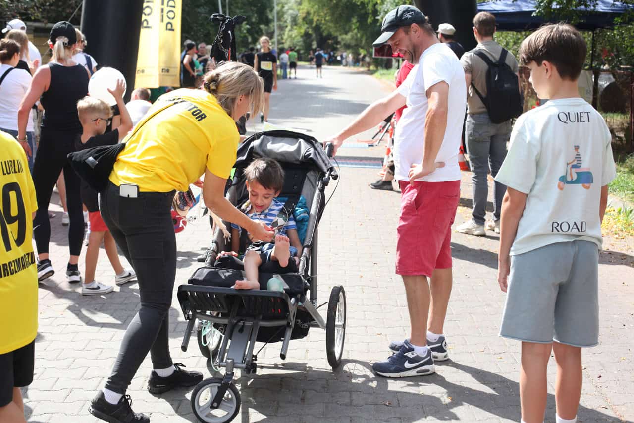 Po zakończeniu głównych biegów odbył się wyjątkowy, symboliczny „Bieg po Wózek” na dystansie 100 metrów. Wzięli w nim udział nauczyciele z Przedszkola Specjalnego Nr 11 oraz Specjalnego Ośrodka Szkolno-Wychowawczego Nr 2 w Lublinie, a także ich podopieczni – dzieci z niepełnosprawnościami. Ten wzruszający moment był prawdziwym sercem wydarzenia, przypominając wszystkim, dla kogo i po co biegną. Wspólna radość, wsparcie i ogromne emocje towarzyszyły każdemu krokowi, czyniąc ten bieg symbolem integracji.
