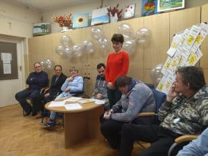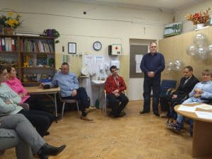 Z okazji urodzin naszej gazetki zostało zorganizowane spotkanie, w którym udział wzięli: redaktorzy, personel ośrodka oraz moi koledzy i koleżanki. Opiekunem j grupy tworzącej gazetkę DŚDS „SŁONECZKO” jest Pani Magda – terapeuta i opiekun pracowni komputerowej.