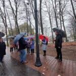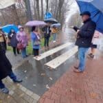 Pod kierunkiem przewodniczki – pasjonatki historii miasta Poniatowa i pod czujnym okiem Eksperta ds. Dostępności pomimo niesprzyjającej, deszczowej aury o godzinie 10:00 wyruszyli oni z budynku Urzędu Miasta Poniatowa na spacer badawczy.