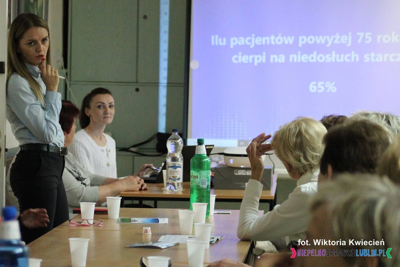 Spotkanie rozpoczęło się od krótkiego wprowadzenia dotyczącego firmy, z którą zawodowo związane są zaproszone prelegentki. Do 2021 roku podmiot funkcjonował pod nazwą „Słuchmed”. Świadczy usługi w zakresie protetyki słuchu, zarówno w ramach prywatnej opieki zdrowotnej, jak i kontraktów z Narodowym Funduszem Zdrowia. Współpracuje również z instytucjami wspierającymi osoby potrzebujące, np. Powiatowymi Centrami Pomocy Rodzinie (PCPR) czy Miejskimi Ośrodkami Pomocy Rodzinie (MOPR).