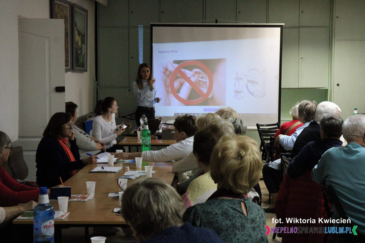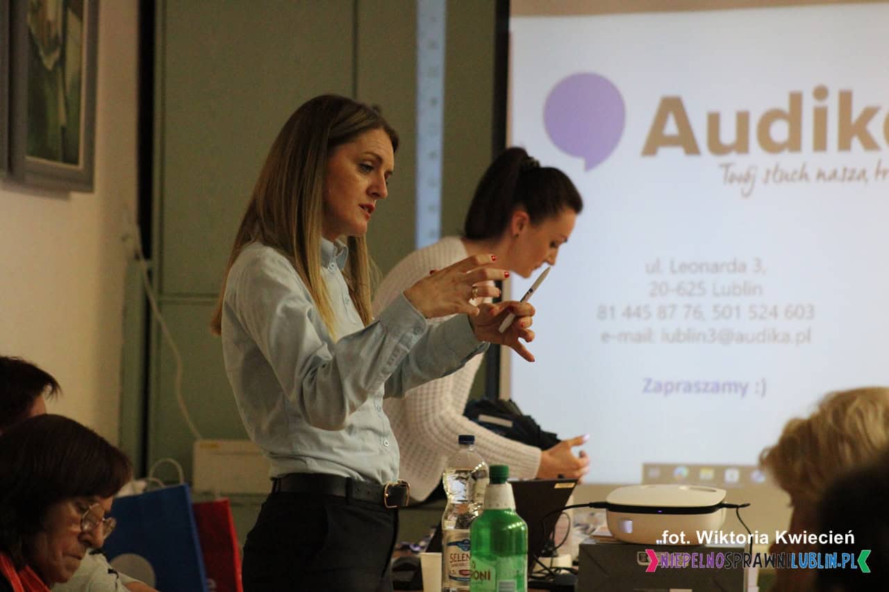 Gośćmi spotkania były panie: Wioleta Tatara oraz Marta Pomianowska-Momont – ekspertki z Centrum Słuchu Audika w Lublinie. Tematem prelekcji były zagadnienia związane z profilaktyką i ochroną zdrowia słuchu.