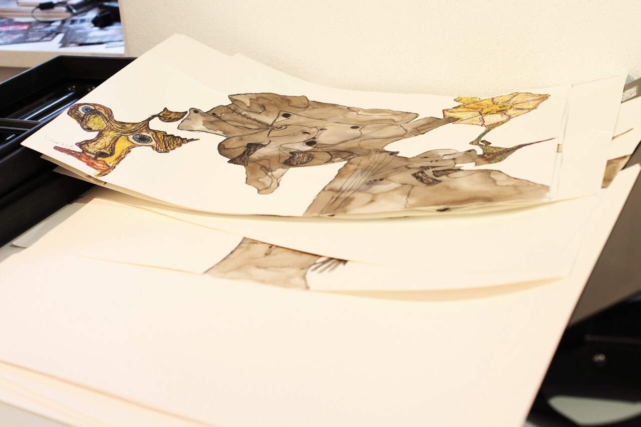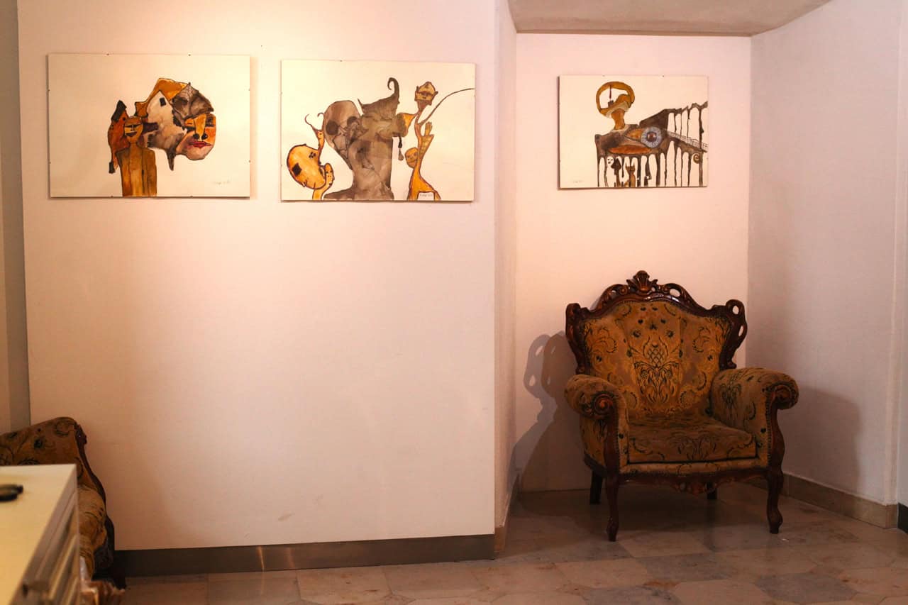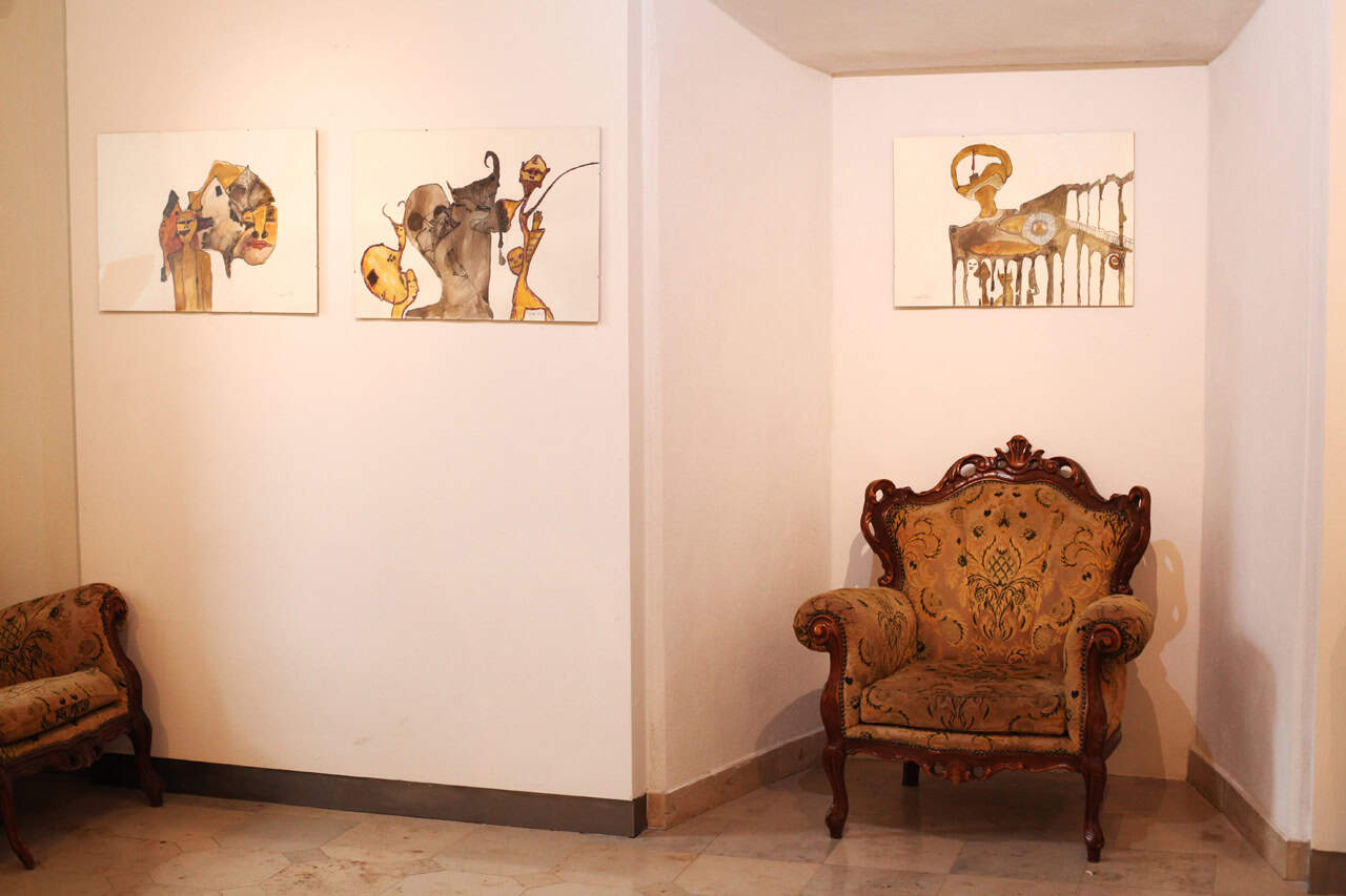 „To kolejna odsłona rysunków Tusz i Akwarela, tylko postanowiłem dodać dużo więcej kolorów. Stąd nazwa wystawy Tylko zmieniają się kolory. Wymyśliłem nową metodę wypełniania rysunków kolorowymi farbami. W ten sposób, że jedna nie miesza się z drugą. Wszystko pozostaje spójne. Nowe wypełnienie znajduje się na pięciu pracach i jestem z nich najbardziej zadowolony. Jest to coś nowego.”