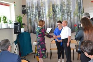 Następnie Pan Starosta i Pan Wójt poproszeni zostali o uroczyste zasadzenie dębu „Maria”, jako wyraz szacunku i hołdu dla ponad 30-letniej pracy p. Marii Lisek-Zięby na rzecz środowiska osób z niepełnosprawnością intelektualną i ich rodzin. Błogosławieństwa Bożego udzielił ks. Michał Surowiec z Nadrybia.