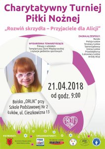 W dniu 21 kwietnia 2018 r. na Boisku „ORLIK” przy Gimnazjum Nr 2 w Łukowie… czytaj więcej o Charytatywny Turniej Piłki Nożnej „Rozwiń skrzydła – Przyjaciele dla Alicji”