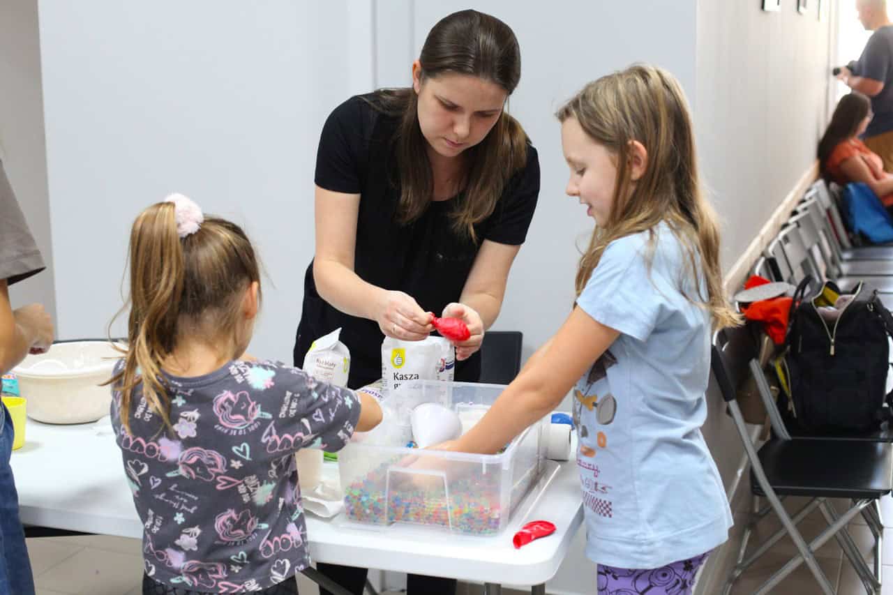 Nie zabrakło też warsztatów z tworzenia gniotków, strefy gier planszowych i klocków oraz fascynującego kącika z piaskiem kinetycznym. Profesjonalne animacje i bogaty poczęstunek sprzyjały integracji i wymianie doświadczeń. Był to prawdziwie rodzinny piknik, pełen gwaru, śmiechu i wzajemnej życzliwości.