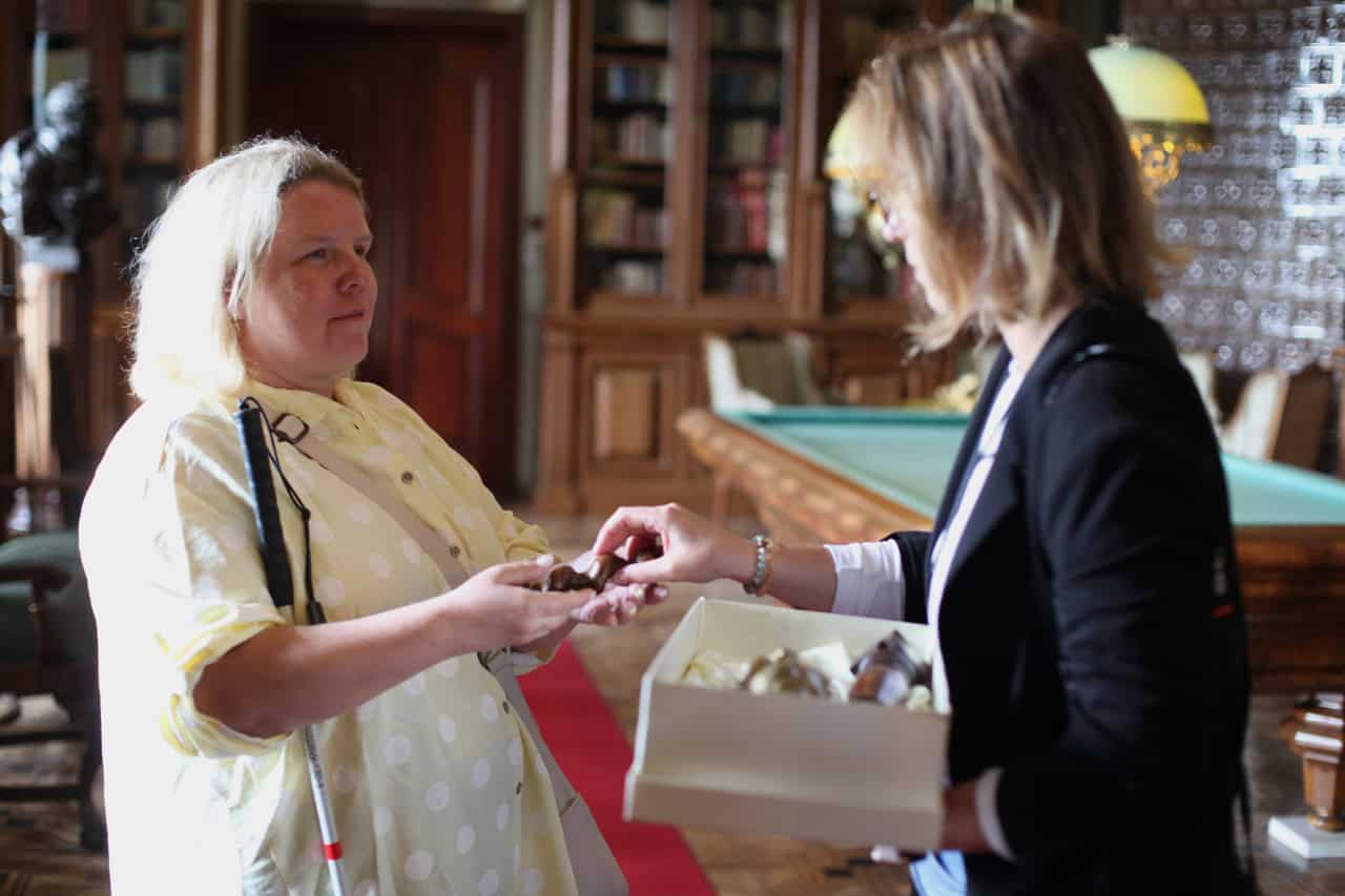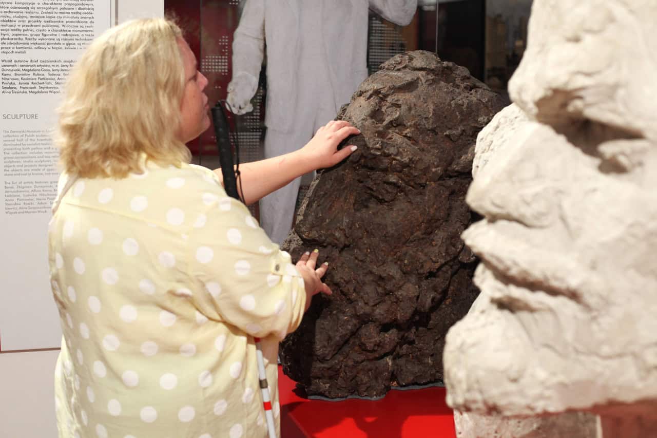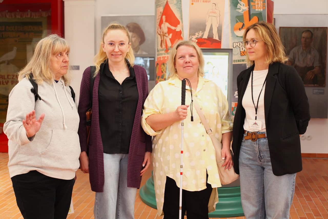 Miejscem, które dostosowano z myślą o osobach ze szczególnymi potrzebami jest Stajnia, gdzie znajduje się wystawa „Socrealizm. Galeria Sztuki”. Tutaj Ewelina również mogła dotykać wybranych eksponatów, a Magda skorzystać z audioprzewodnika.