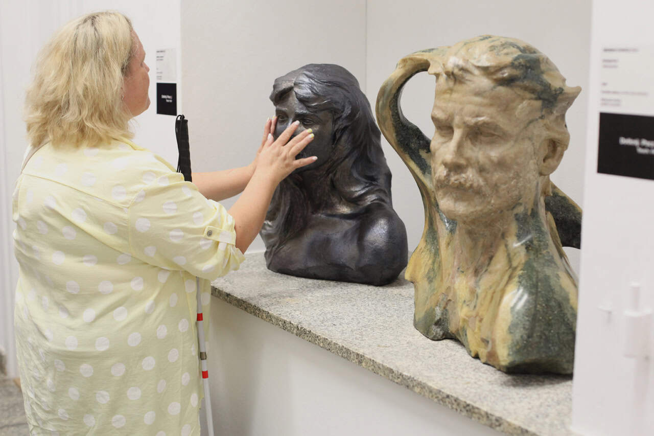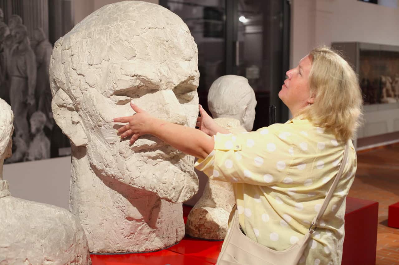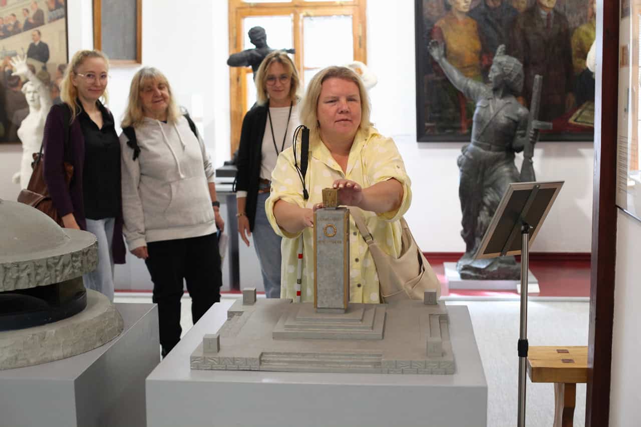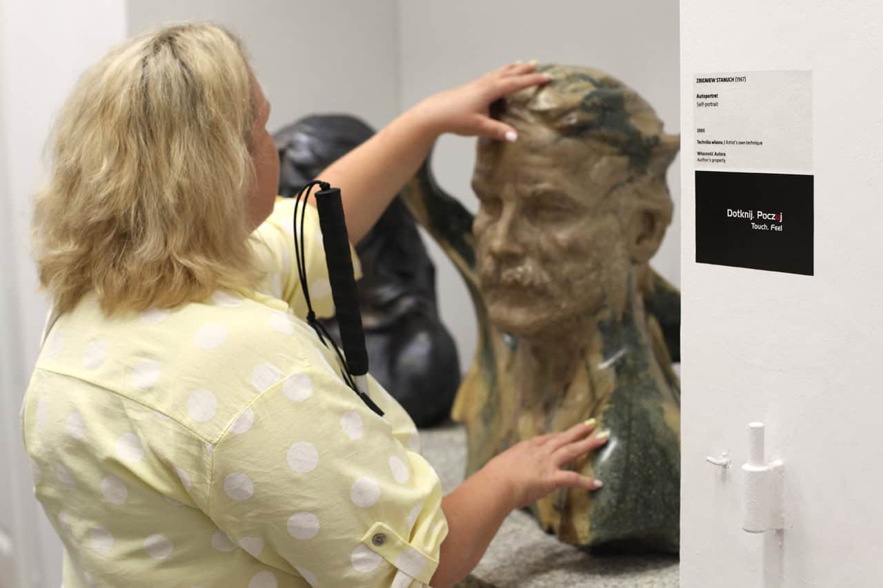 Miejscem, które dostosowano z myślą o osobach ze szczególnymi potrzebami jest Stajnia, gdzie znajduje się wystawa „Socrealizm. Galeria Sztuki”. Tutaj Ewelina również mogła dotykać wybranych eksponatów, a Magda skorzystać z audioprzewodnika.